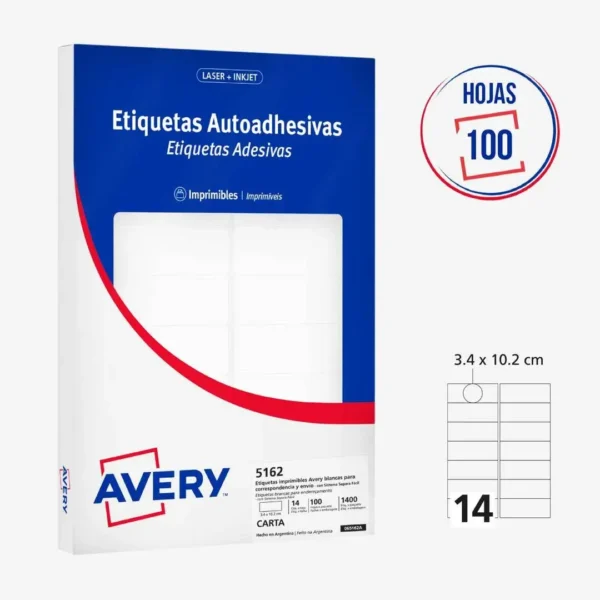 ETIQUETAS AVERY 5162 3.4X10.2 100H cantidad