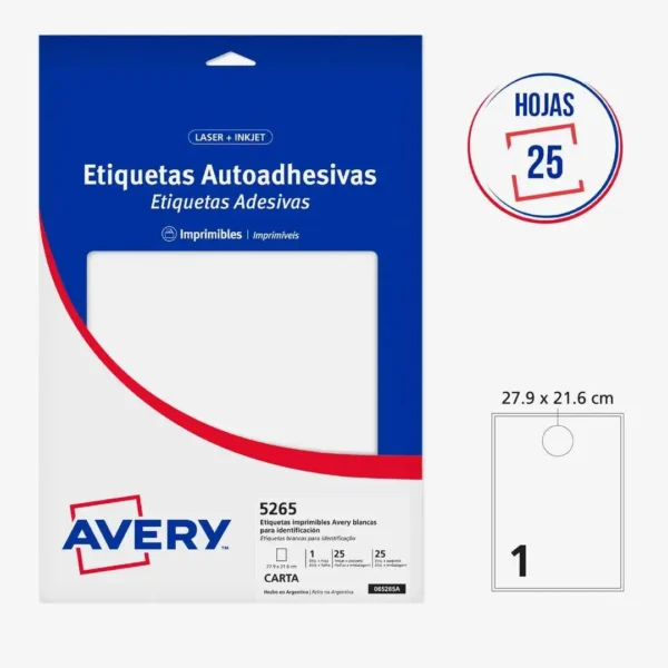 ETIQUETAS AVERY 5265 27.9X21.6 25H