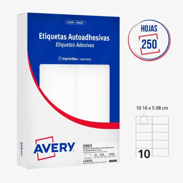 ETIQUETAS AVERY 5963 5.1X10.2 250H cantidad
