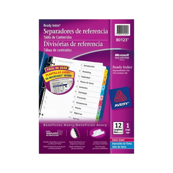 JUEGO SEP.AVERY 80123 A4 1-12 cantidad