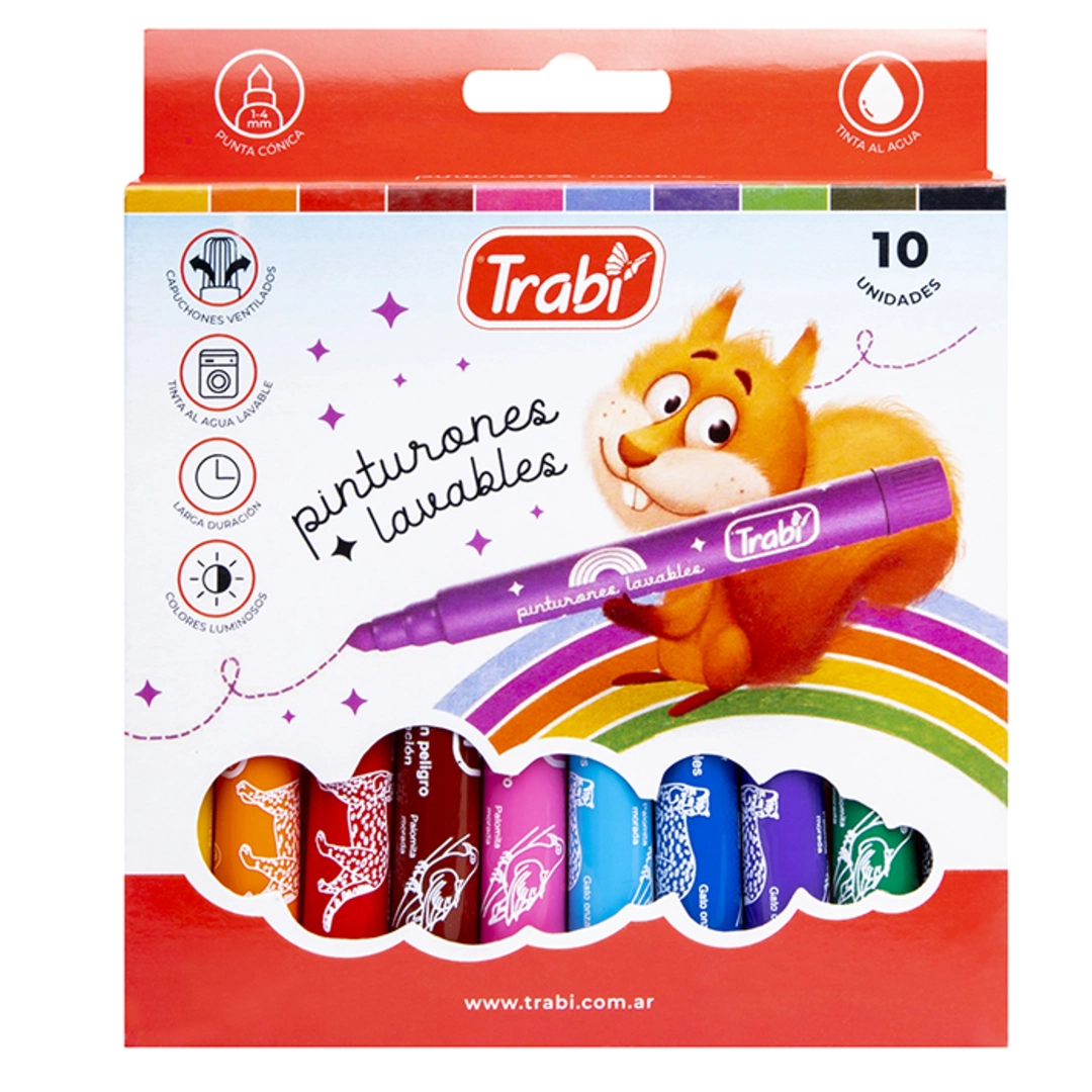 MARCADORES PINTURON TRABI LAV.X 10COL.SURT(6181) cantidad