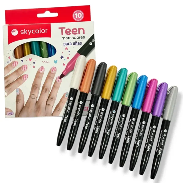MARCADORES SKYCOLOR TEEN P/UNAS X 10COL.SURT. cantidad